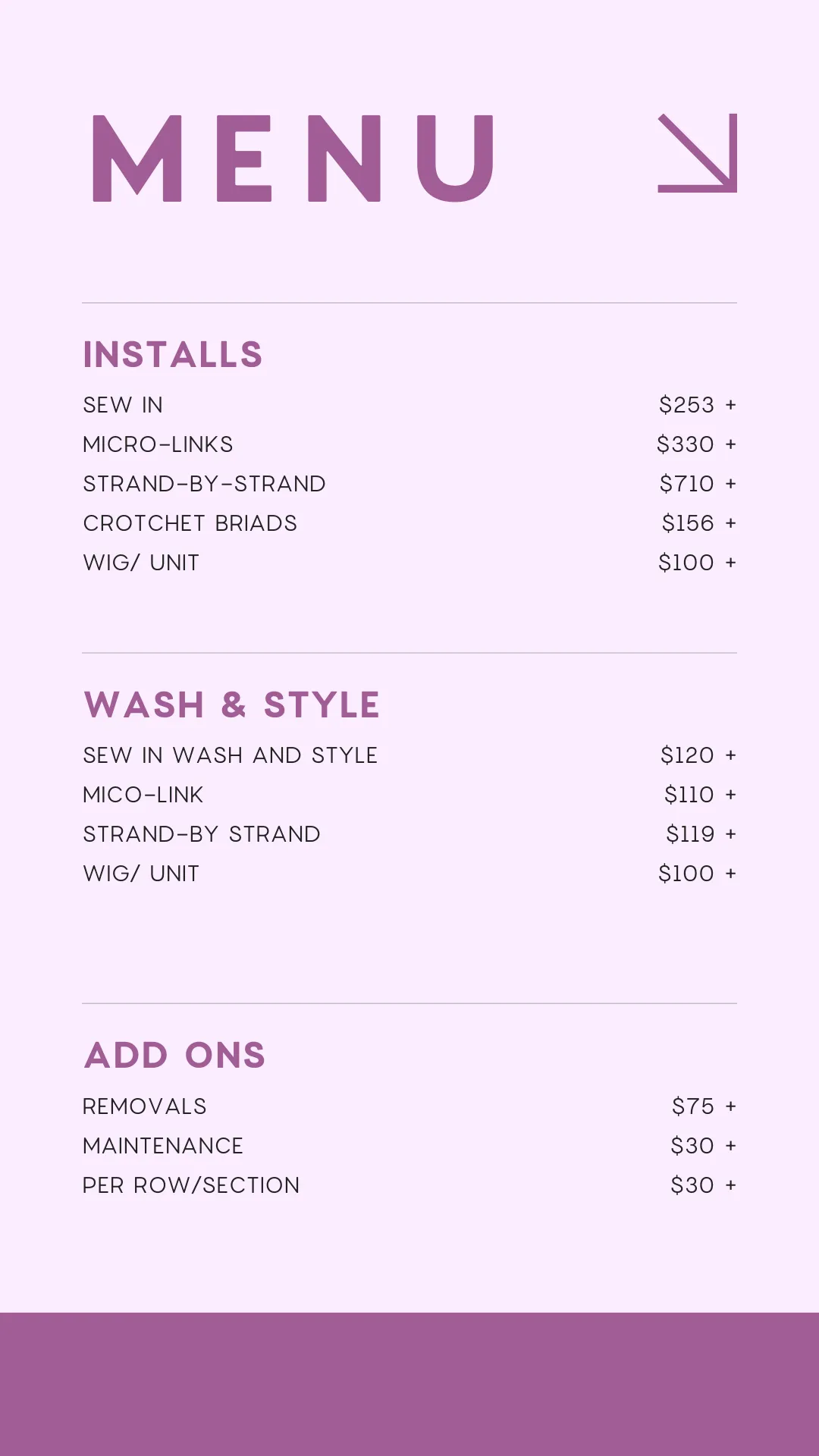 A consultation is required for all new clients and for returning clients who have not visited within the last 12 months. This allows us to ensure your requested style supports your current hair and scalp needs.